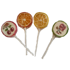 | Composition | Sucre, sirop de glucose, miel 3%, arômes et colorants naturels : citron-curcumine, framboise-cochenille, orange-extrait de paprika, poire-complexe cuivrique de chlorophylle et charbon végétal, fraise-curcumine, carmine et charbon végétal |